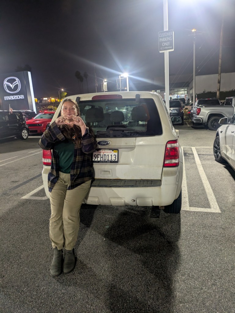 I signed paper after paper. I promised I wouldn’t put snow chains on my new-used car and wouldn’t hold them liable if I did. I said yes, you did provide me a license plate holder on the front. Yes, I am the sole owner of this Ford, and no, there’s no lien on him, no, he’s never been used for Uber or Lyft.